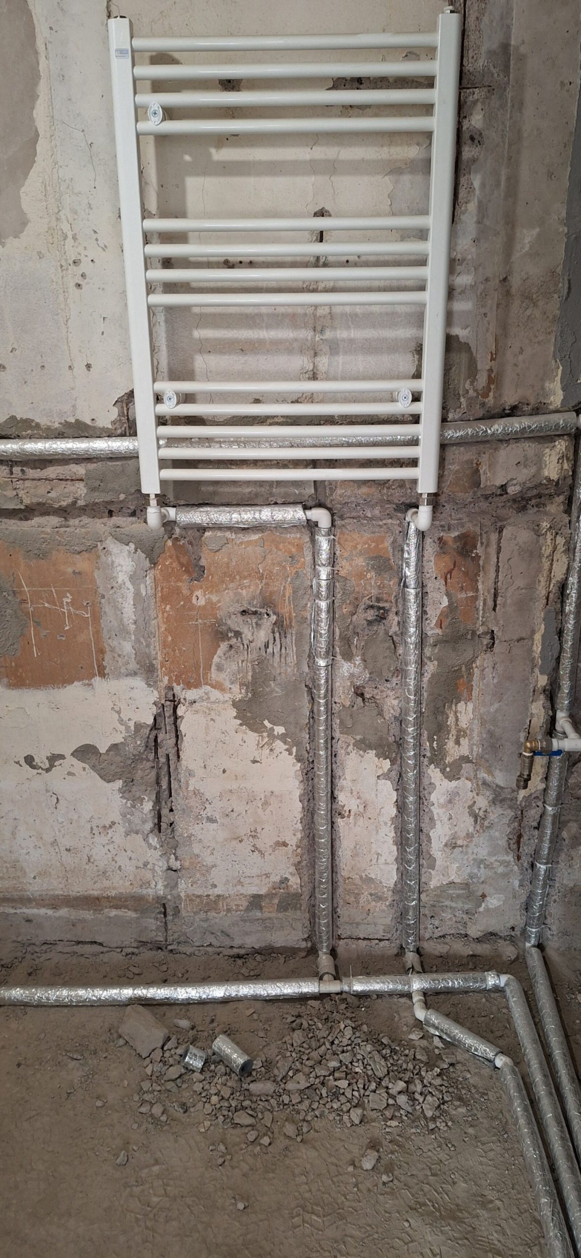 4. Обеспечение доступа: Там, где это было возможно, мы расчистили пространство вокруг труб, чтобы обеспечить удобный доступ для работы. В некоторых местах пришлось временно демонтировать полки или другие конструкции.